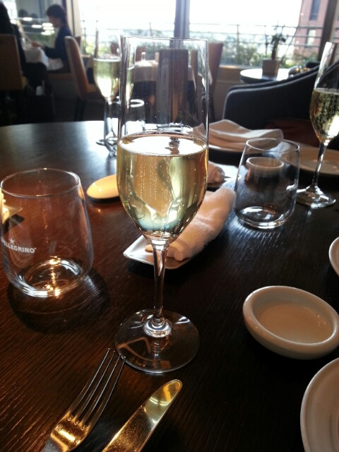 13時からは2800円のプリフィクスに900円プラスでスパークリングワインが飲み放題とのことで、13時からの予約。日差しが入って明るい店内は手前のエリアはほぼ満席で、みな楽しそうに食事をなさっています。