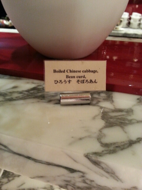 そして、イブニングカクテルのホットミールがオーダー制ではなくなり、ブッフェゾーンにおかれるようになりました。説明もついています。