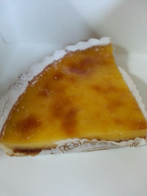 今回購入したのはプリンカスタードタルト。 甘いです。1/4カットを購入したのですが、途中でギブでした。おいしいのですがね。