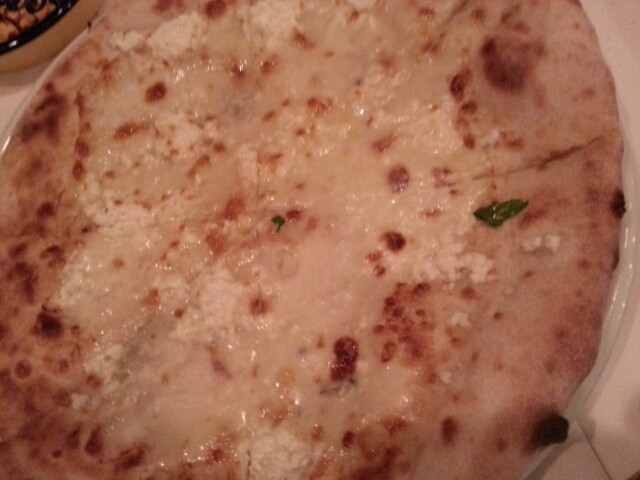 4つのチーズのピッツァ。4つのチーズの、と冠がつくものは、たいてい1種~2種が結構クセがあって、「ううっ」となりそうなのですが、こちらのはとてもいただきやすかったです。なにがちがうんだろ?理由がしりたいです(笑)