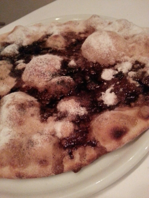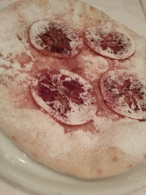 〆は、もうひとつのデザートピッツァ。オレンジとバニラでした。これも美味。生地のほんのりとした塩気とオレンジの甘酸っぱい風味、そして、バニラが何とも言えないコンビネーションを生み出していました。