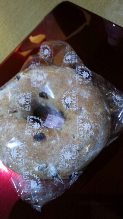 まずは、今月限定なブルーベリーのベーグル。胡桃がはいっており、真ん中にはチーズがはさまっています。甘酸っぱいのとしょっぱいの、両方楽しめました。