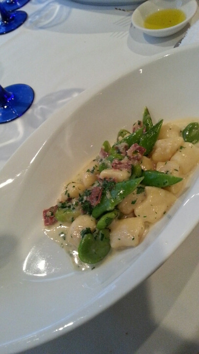 こちら、ニョッキはゆですぎでした。正直。でも、ソースがうますぎ。春の豆類ということで、これらが美味でした。ニョッキのあつかいが本当におしい!