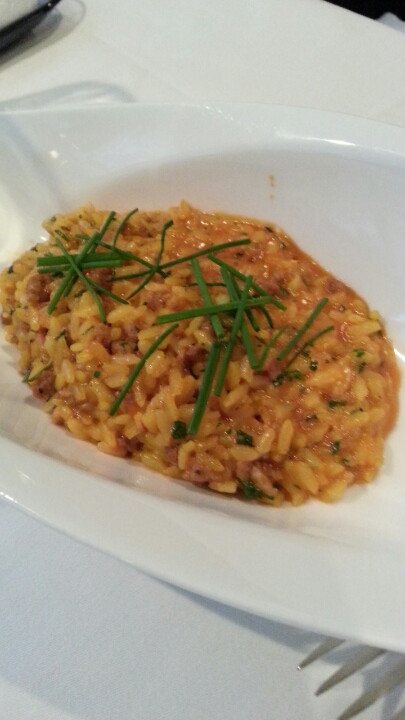 友人はサルシッチャとサフランのリゾット サルディーニァ風をオーダー。パスタという位置づけなのか。