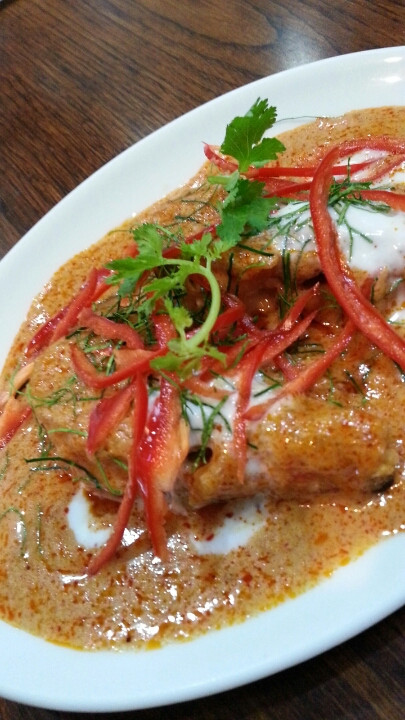 タイ料理ではなんとかの一つ覚えのようにオーダーしてしまうパパイヤのサラダ。こちらのお店のは、いろんな隠し味があるようで、飽きずにいただくことができました。辛いという印象はほとんどなし。おいしいなぁ。
