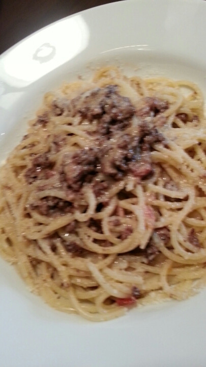 ボロネーゼはチーズがきいていておいしいです。トマトソースではないボロネーゼということでしたが、わたし的には結構好みでした。