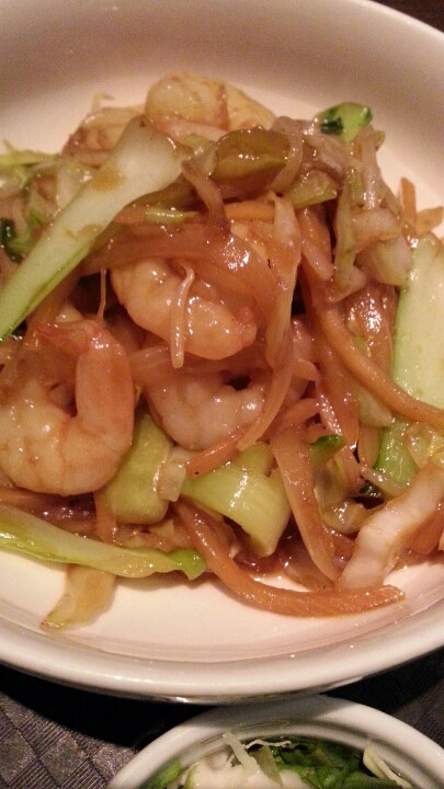 オーダーしたのは日替わりである、「芝エビの五目野菜炒め@900円」です。
