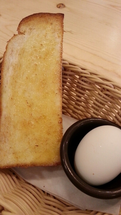 オマケと言いながらも、目玉のモーニングのパンも、塗ってあるバター?マーガリン?も、あまり高評価ではなかったです。卵も寄ってたし(笑)