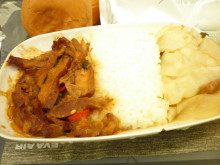 どんと配られる機内食。パンはちゃんと温かかったです。