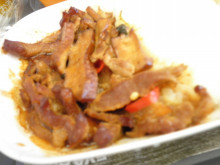で、たしかにポークと厚揚げ?みたいなのをあまからいソースで炒めてあるものです。