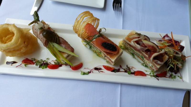 画像からおわかりのとおり、普通のサンドイッチ、といっても場所が場所なので、その普通もかなり高レベルなのですが、そこに各種高級食材のトッピングがなされているということです。