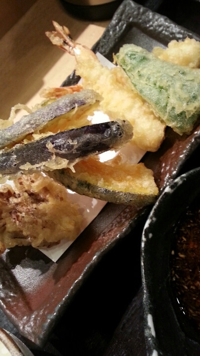 海老2尾、なす、ぴーまん、まいたけ、かぼちゃです。季節によって提供される野菜は微妙に変動します。