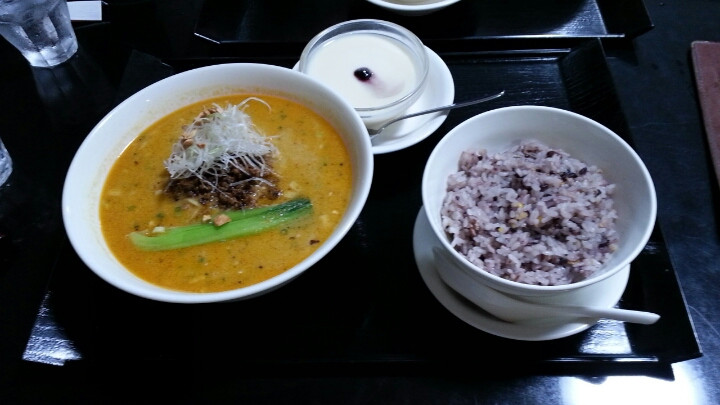 オーダーしたのは、麺飯セット1,000円から、タンタン麺と十五穀米飯のセットと、五目つゆそばと十五穀米粥のセットです。