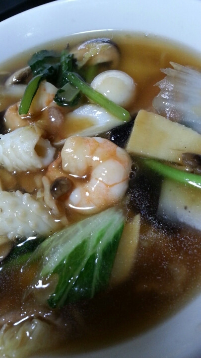 五目つゆそばをアップで。あっさりした風味でしたが、食べごたえはありました。