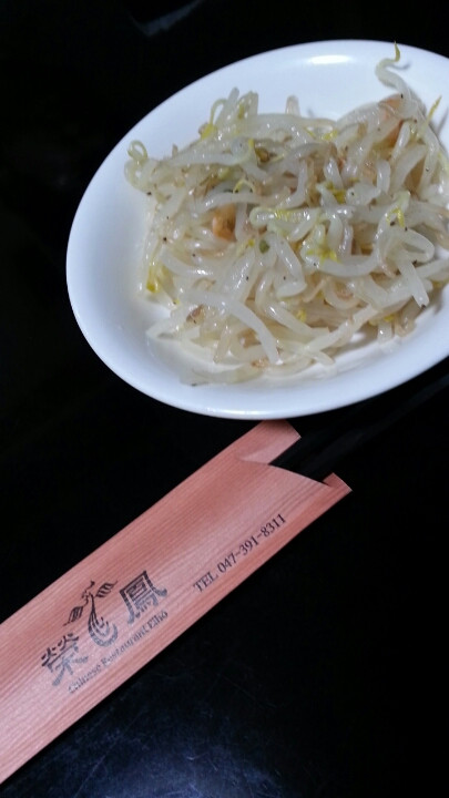オーダー後は、すぐに各自で店内に大皿で提供されているもやしの惣菜とザーサイを取りに行きます。わたしはザーサイがあまり得意ではないのでパスりましたが、もやしは小海老がはいっていてこれだけでも十分なおかずの一品であると思いました。