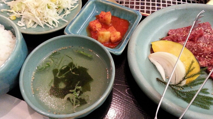 お願いしたのはランチメニュー、ハラミ定食(1,000円)です。ハラミに、ご飯、サラダ、スープ、キムチとついてきて結構なボリュームです。
