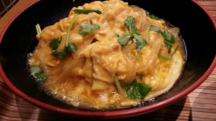 玉子丼アップ。とろとろ具合がいいですね。御飯少な目できますか?とお尋ねしてできるとのことでしたが、たぶん、あまり減らされていないと思います(笑)