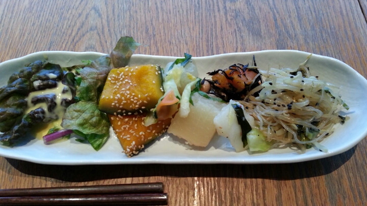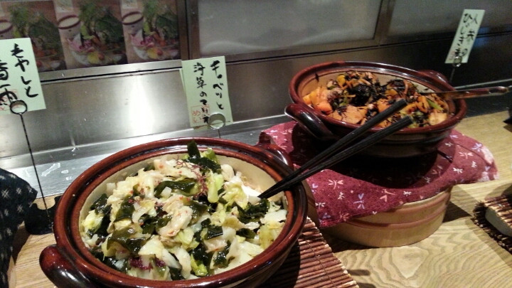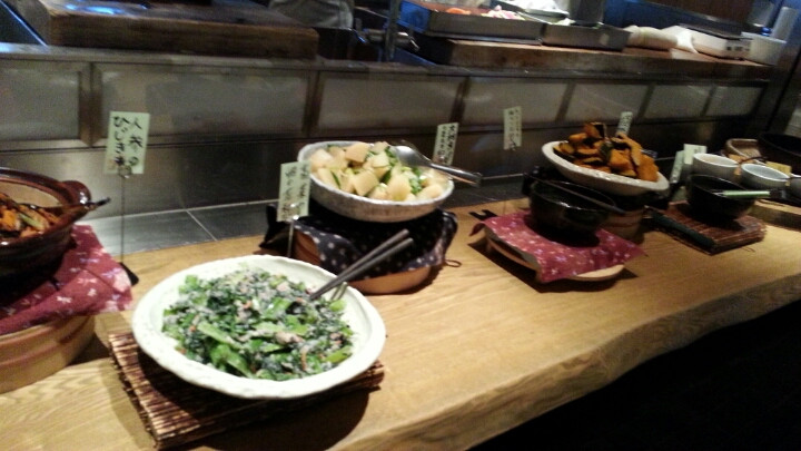 入口はいってすぐ目をひくのがお野菜のビュッフェエリアです。他の店舗では見たことがないのですが、お惣菜が数種類あります。こういうのは、いいですよね☆
