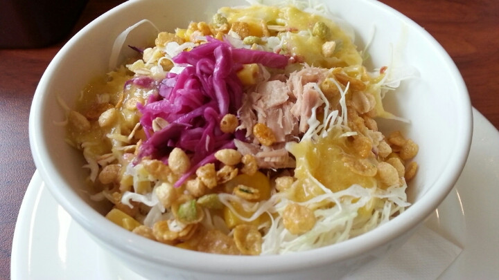 これだけでは寂しいので、ツナとコーンのサラダボウル(税込200円くらい)もお願いしました。ちょっと前までは、サイドディッシュで100円くらいのサラダだったと思うのですが、それより、多少量が増えて、シリアルがトッピングされていておいしさが増えています。