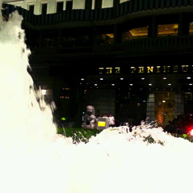 ベルな人が常に気を配っていて、なんだか香港じゃないみたいな場所です。外からも噴水+ペニンシュラのロゴと画像に収めるつもりでしたが、なんだか、なんだかな画像になりました。この画像だけ、ちょっとvivid気味に加工しました。