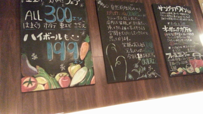 中洲川端のあたりで、どうしようかな、と思って、「炉ばた」と「バル」との組み合わせにひかれて、「OKAERI」におじゃましてみました。