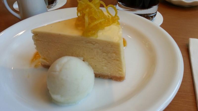 わたしがいる間は常に満席でして、人気があるみたいです。オーダーしたのはチーズケーキとセットのドリンクです。