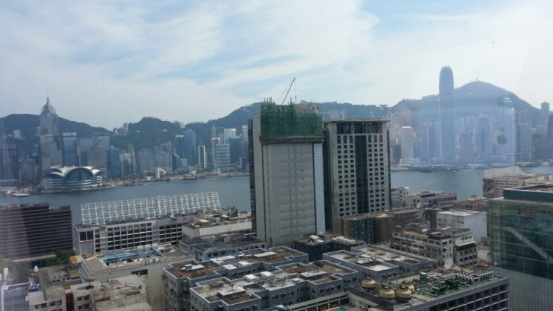 部屋は23階みたいですね。ややハーバービューですね。ちょっと高い建物が工事中なのが邪魔。