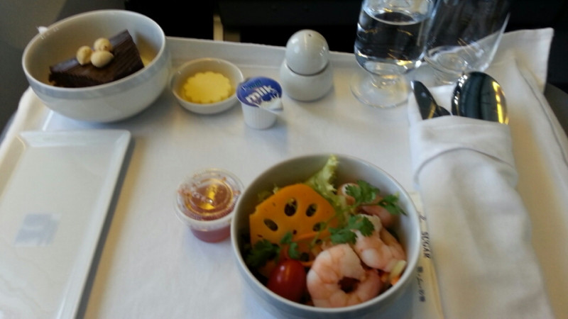 機内食は、必ずどれか、「ハズ」すものがあるのですが、このプレートは完璧BINGOでわたし好みでした。