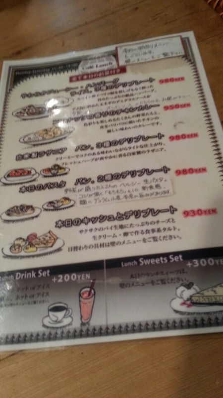 店内は、どう表現したらよいかわからないのですが、まあ、カフェです。内装は良く見てないのですが、印象としてはカントリー系というか、ハンドメイド好きな女性が好みそうな雰囲気です。当然、わたしは、居心地個人的にはあんまり・・・。