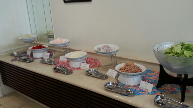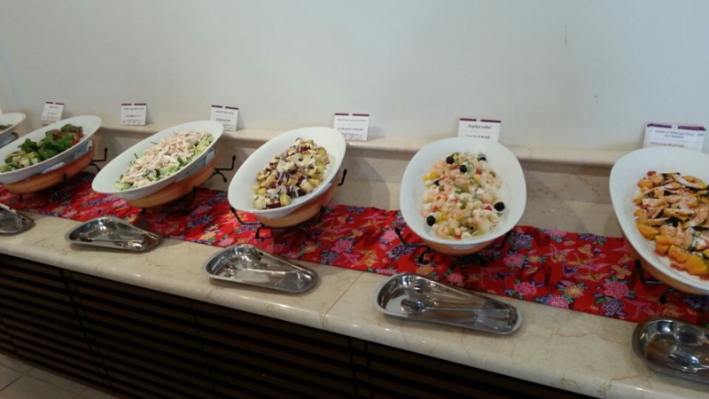 メニューはなんとなく入店前に予習したので、着席してからすぐにオーダーをし、サラダバイキングコーナーをチェックすると、とてもボリューミーで美しいビュッフェ料理群。