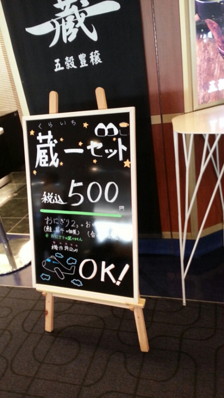 おいしそうなかつリーズナブルなセットもありましたが、そんなの座って食べたら飛行機乗りたくなくなっちゃうので、やめてひそかにおにぎり1個をえらびました。
