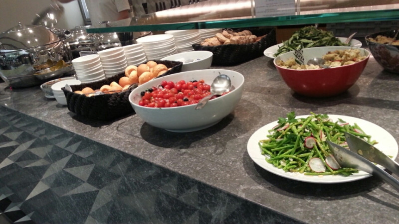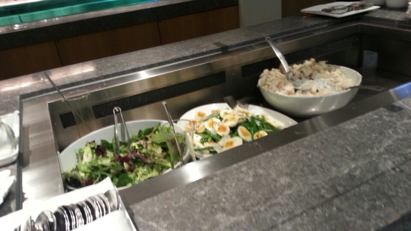 わたしはこちらにお邪魔する前にすでにピアラウンジで坦々麺いただいているので、コールドミールに目が行きますが温かいものをいただくことも可能です。