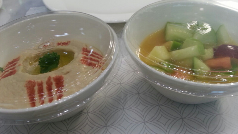 安定のフンムスとフルーツカクテル。