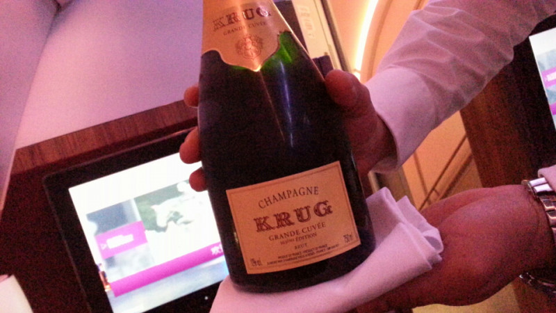 ということで、まずは、SYDDOHの14時間強のファーストクラスの旅ですが、なんとも言えない体験をしました。ダイジェストでお伝えします。画像は、ファーストと言えばのクリュグを。食事はまた後日。担当の方は佐藤B作さんが元気なころに似ていらっしゃいました。とても親切でしたよ。