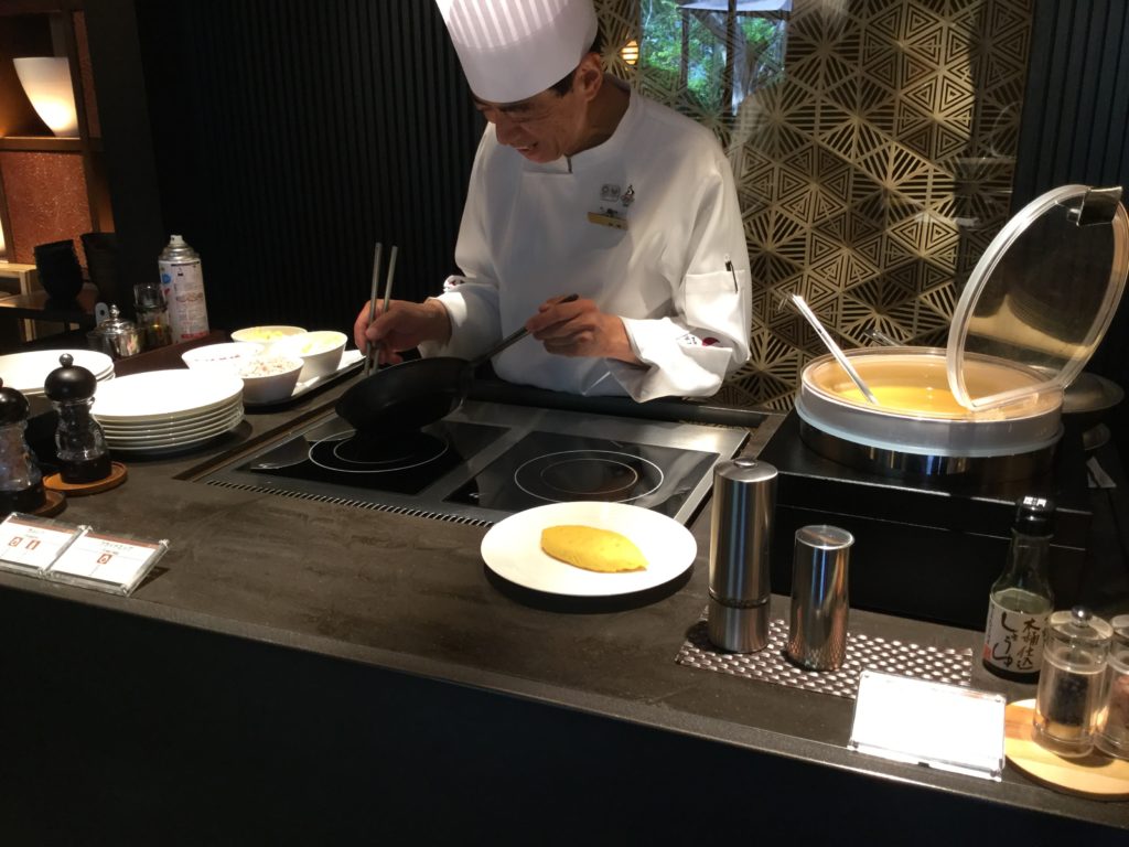 こちらも朝食の様子です。タマゴ料理をその場で作るカウンターがありました。こちらもバフェスタイルですが、他の2つのラウンジにくらべて和食に重きを置いている印象をうけました。たまたまそういう日だったかもしれませんし、ホテルの顧客層からそうなのかもしれません。