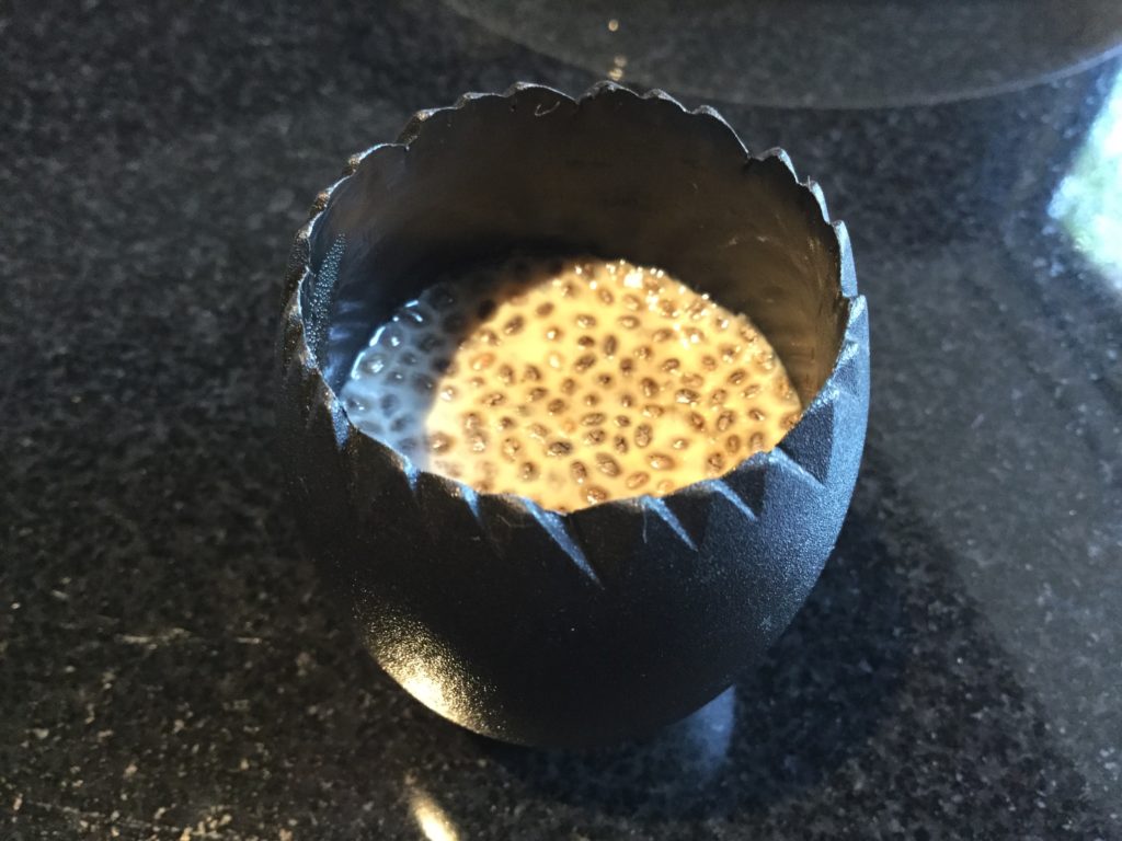 あ。料理人さんにはもちろん許可いただいてから画像撮りました。そして、画像の下段左下、スマホで見ると、うしろから3枚目のへんな黒いモノにブツブツしたものがのっかってるやつ。これ、チアシード入り茶わん蒸しでした。激ウマ。個人的にチアシード大好きなので、わんこ茶わん蒸しやりたかったですが、つれがいたので自粛しました。外側の黒いのは食器です。なのでこれは結構常駐メニューかも!