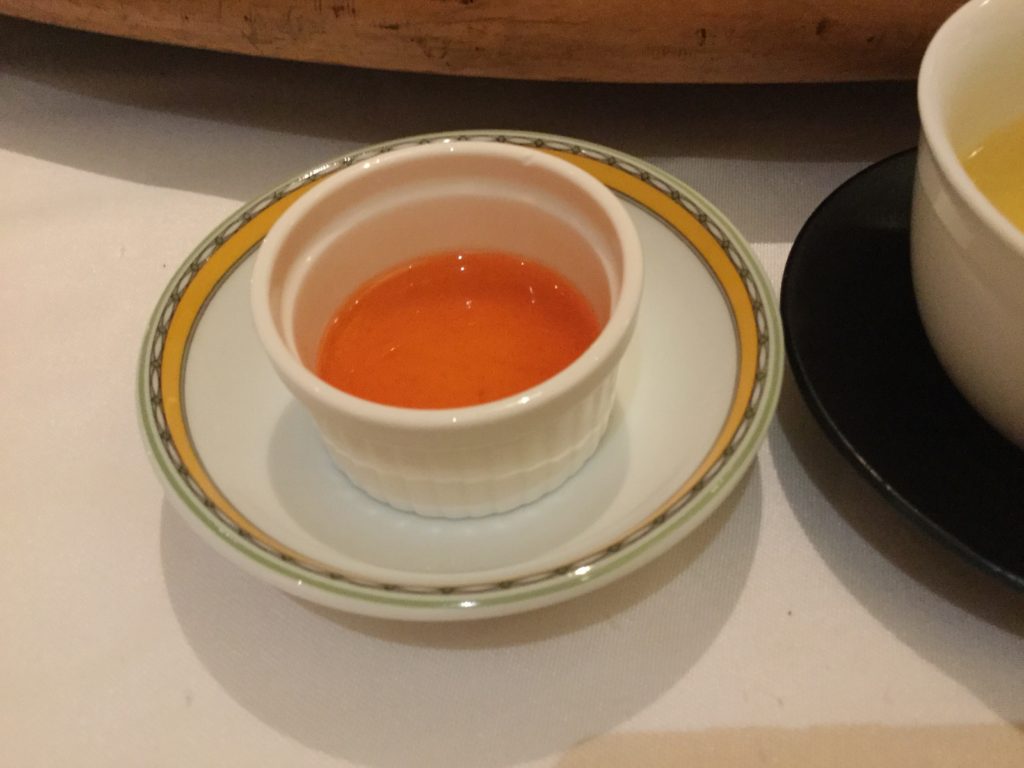 ヌーベル系というかやや創作入ってるぽいメニュー。ちょっと難しいかな。チャイとお茶のマリアージュ的なテーマで。色合いはあるけれど、パクチーやジェノベーゼを捨てる勇気をもってほしいなーと。