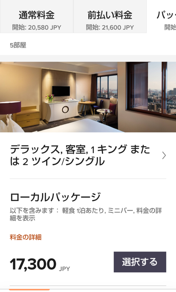 予約したのはGO TO関係なく9月でも提供されているミニバーつきのローカルパッケージです。