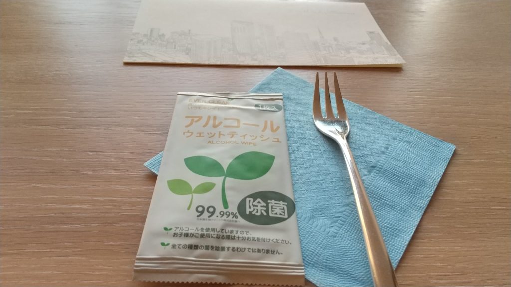 1階エレベーター前には、検温チェック、消毒のために人が一人アサインされていました。誰でも入れる場所にちゃんと人を配置しているのは好ましく感じました。