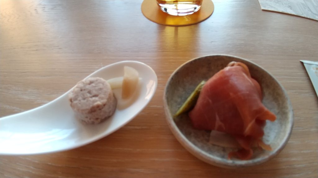スナックは、虎ノ門きやのペッパー味のおかきとチョコ、ポークマリネ、生ハムなど。タケノコとなにか(記憶混濁w)のもありまして、それも美味でした。