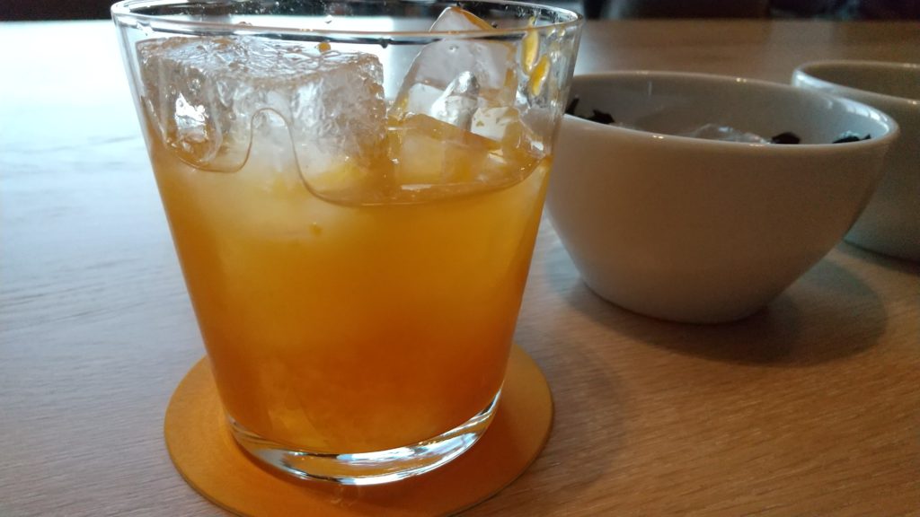 ドリンクは、ビール→あらごしみかんのロック と変遷しました。このあらごしみかん、危険です。